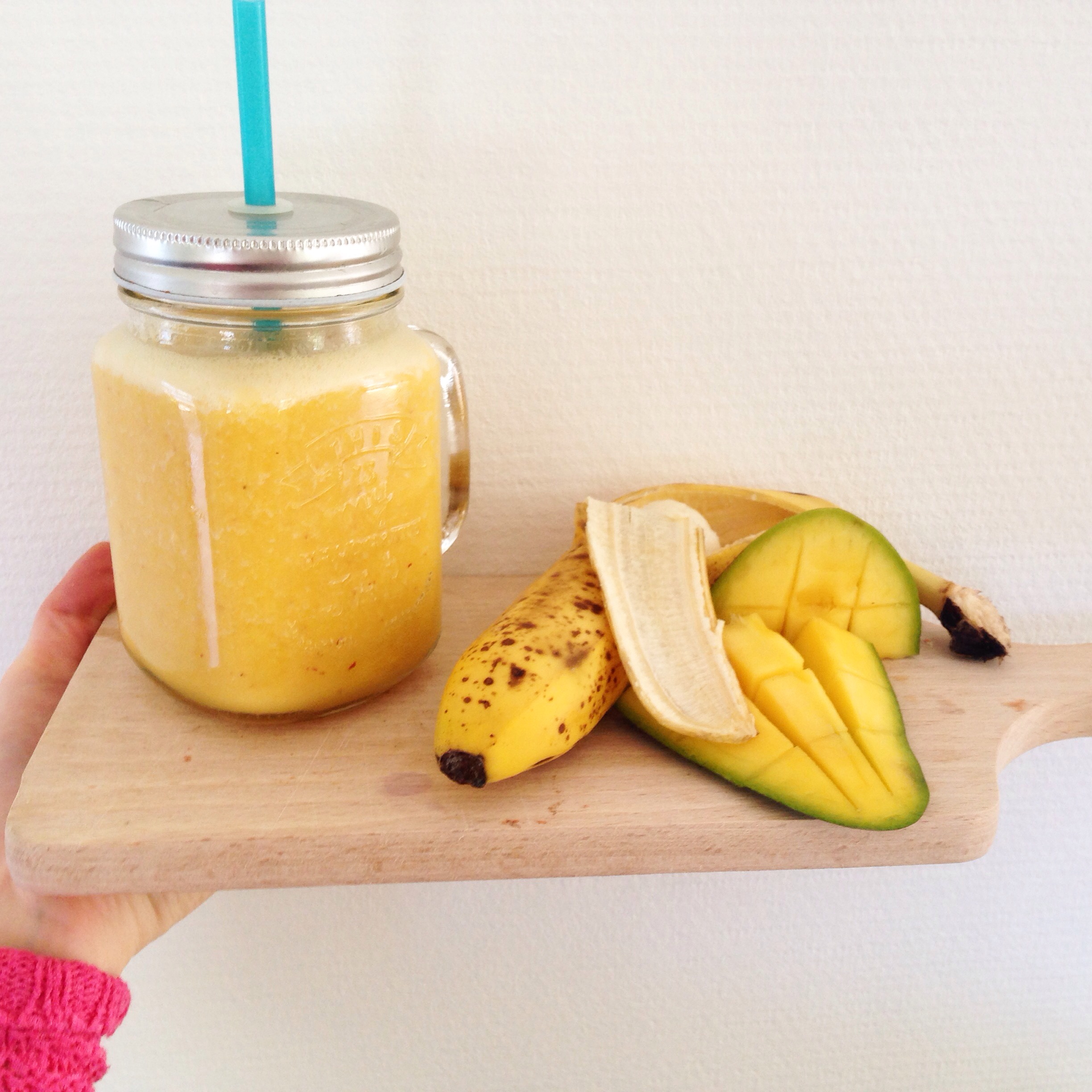 Dit keer heb ik een mango smoothie gemaakt, wat heb je voor 1 groot glas nodig?
