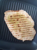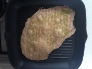 Verwarm de grillpan, laat het goed heet worden. Leg hier het deeg in voor ongeveer 2 minuten en draai daarna om. Smeer de bovenkant met kruidenolie en als de andere kant ook bruin / gaar is haal je het uit de pan en ga je verder met de andere porties.