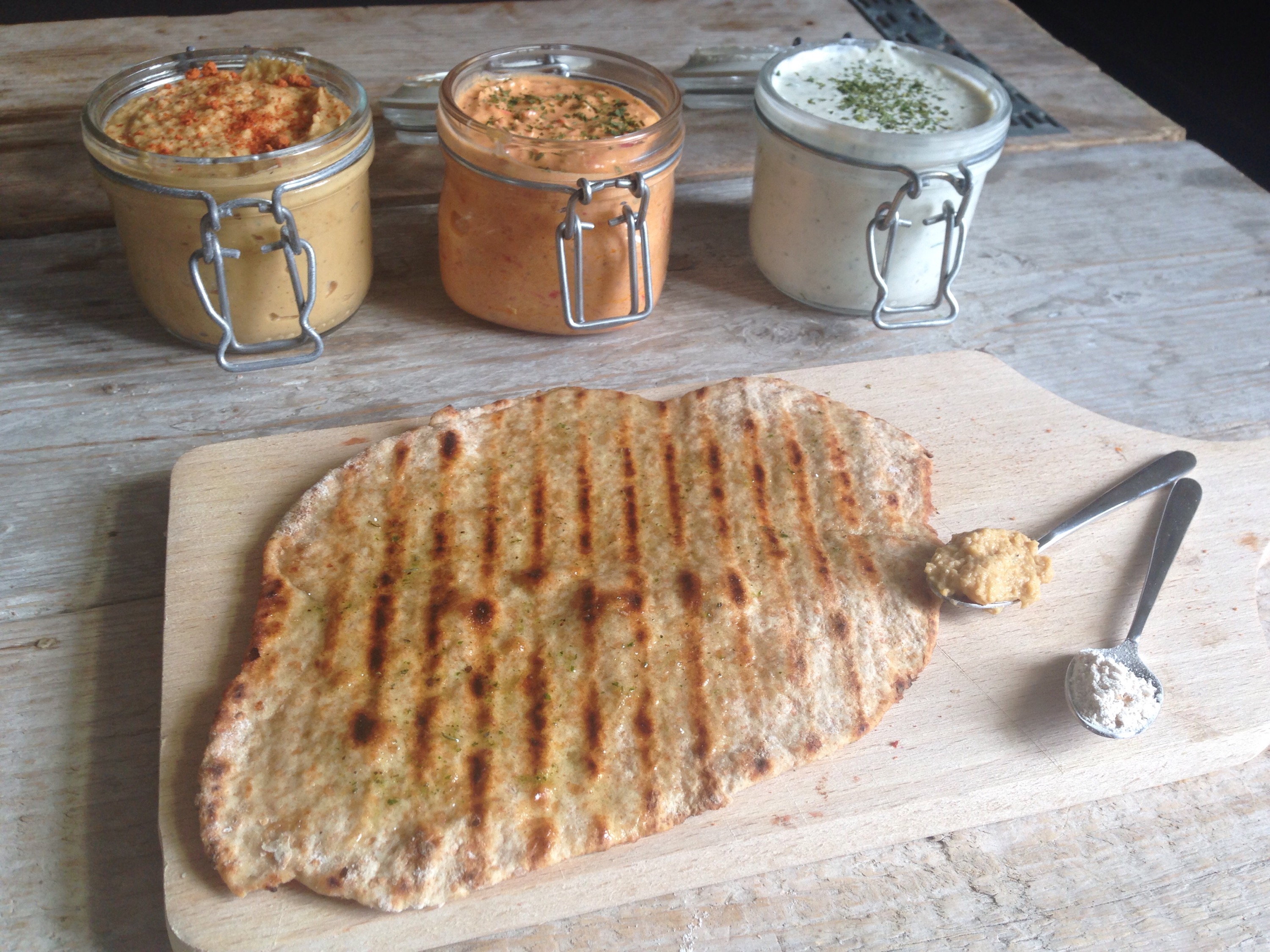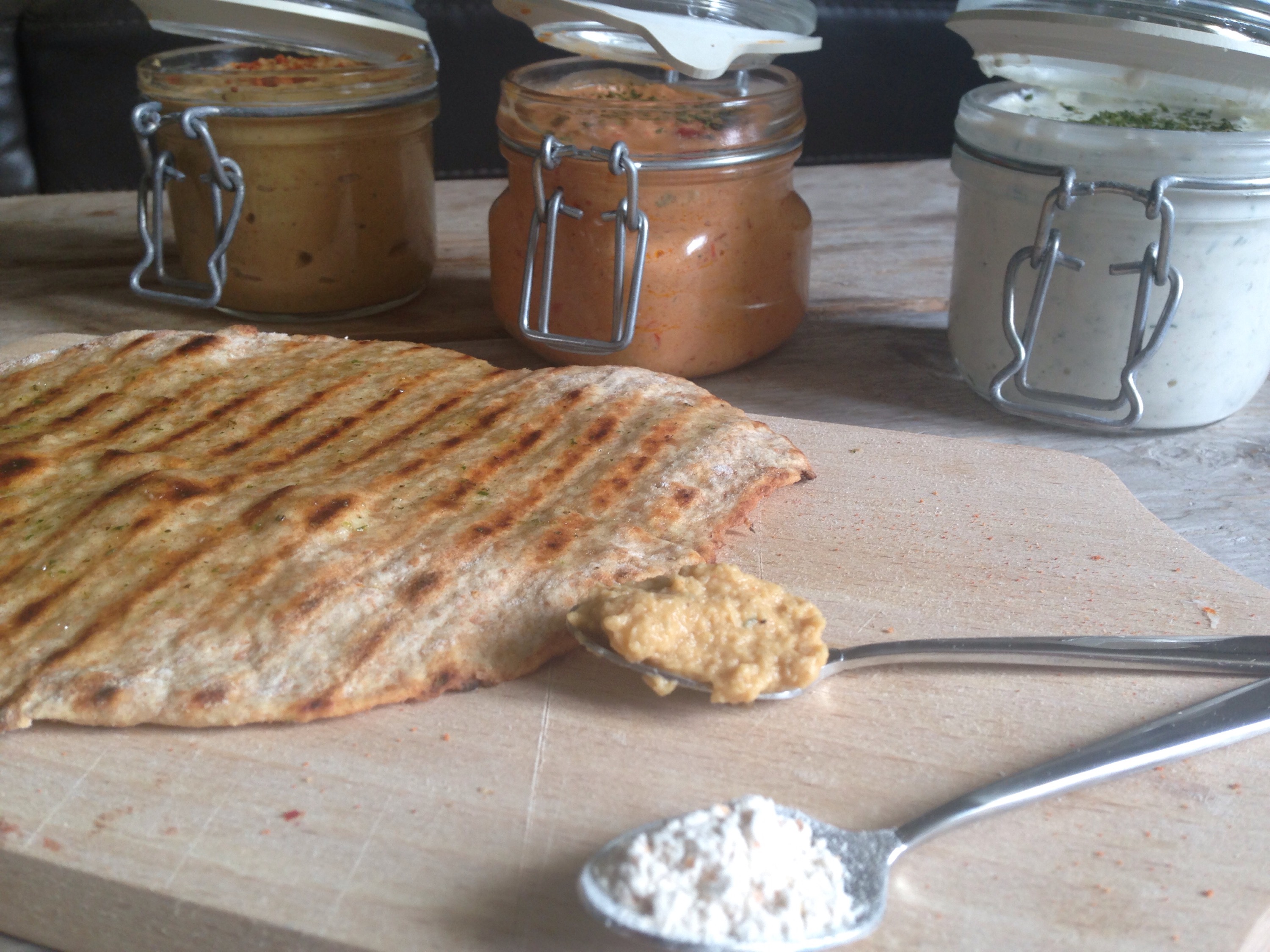 Afgelopen weekend had ik ‘tapas’ avond. Tijdens deze avond heb ik allemaal lekkere hapjes gemaakt. Bij tapas mag natuurlijk brood met dips niet ontbreken. Stokbrood is lekker maar vult wel snel, dit maal heb ik naanbrood gemaakt. Eigenlijk ken ik ‘naanbrood’ nog niet zo heel lang, althans het woord. Maar het dunne platte brood kan je bij de meeste supermarkten wel kopen, in de buurt waar de tortilla’s ook liggen. Het brood is makkelijk om zelf te maken, deze variant hoeft niet te rijzen, wat het extra makkelijk maakt. Naanbrood, knapperig, op smaak maken met diverse kruiden en snel klaar voor als er spontaan mensen voor de deur staan.