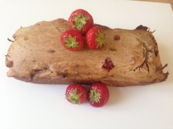 Smelt de kokosolie in een kleine steelpan op laag vuur. Voeg als het gesmolten is toe aan het mengsel. Snijd de aardbeien in partjes en voeg het ook toe aan het mengsel.
