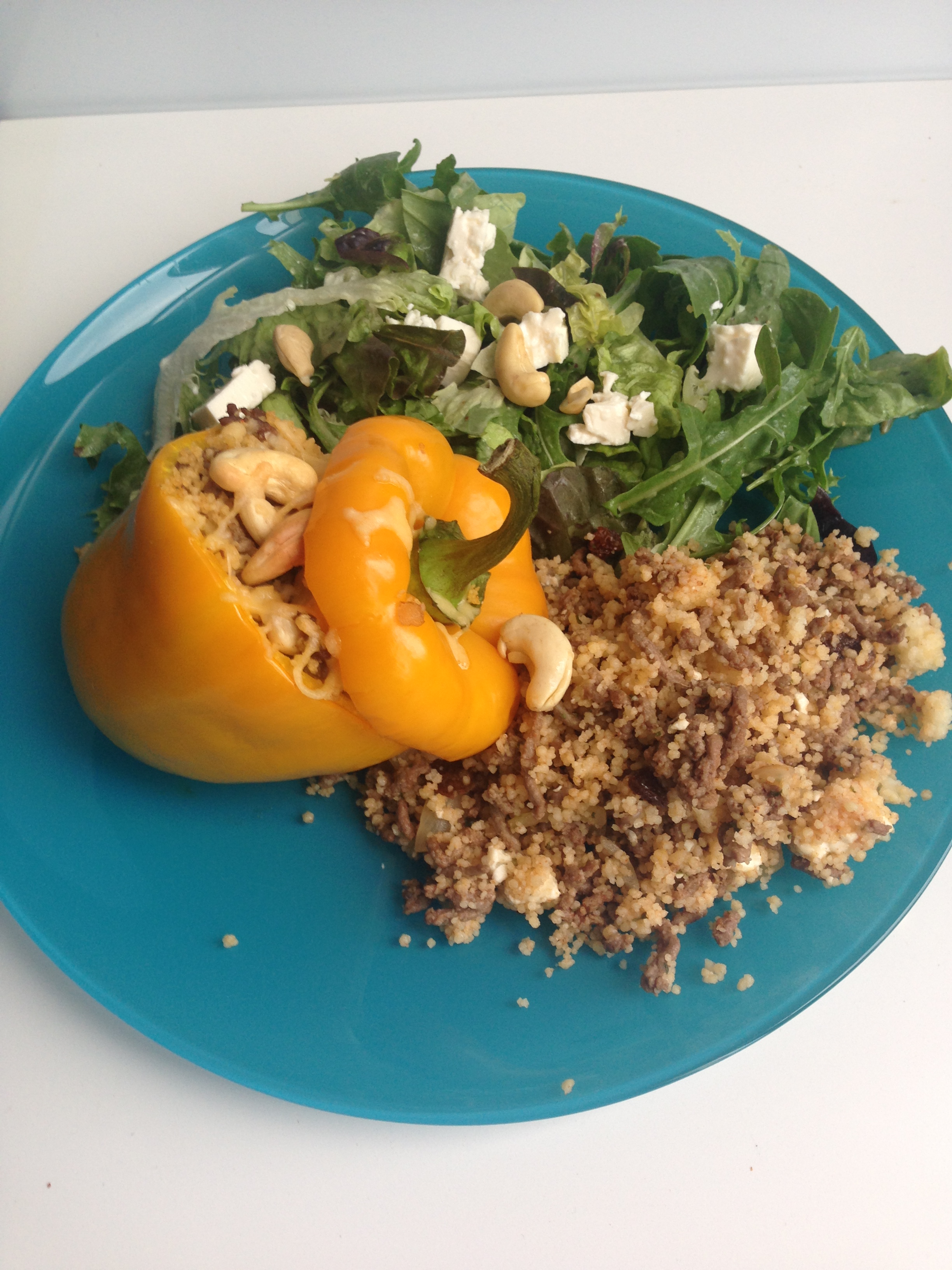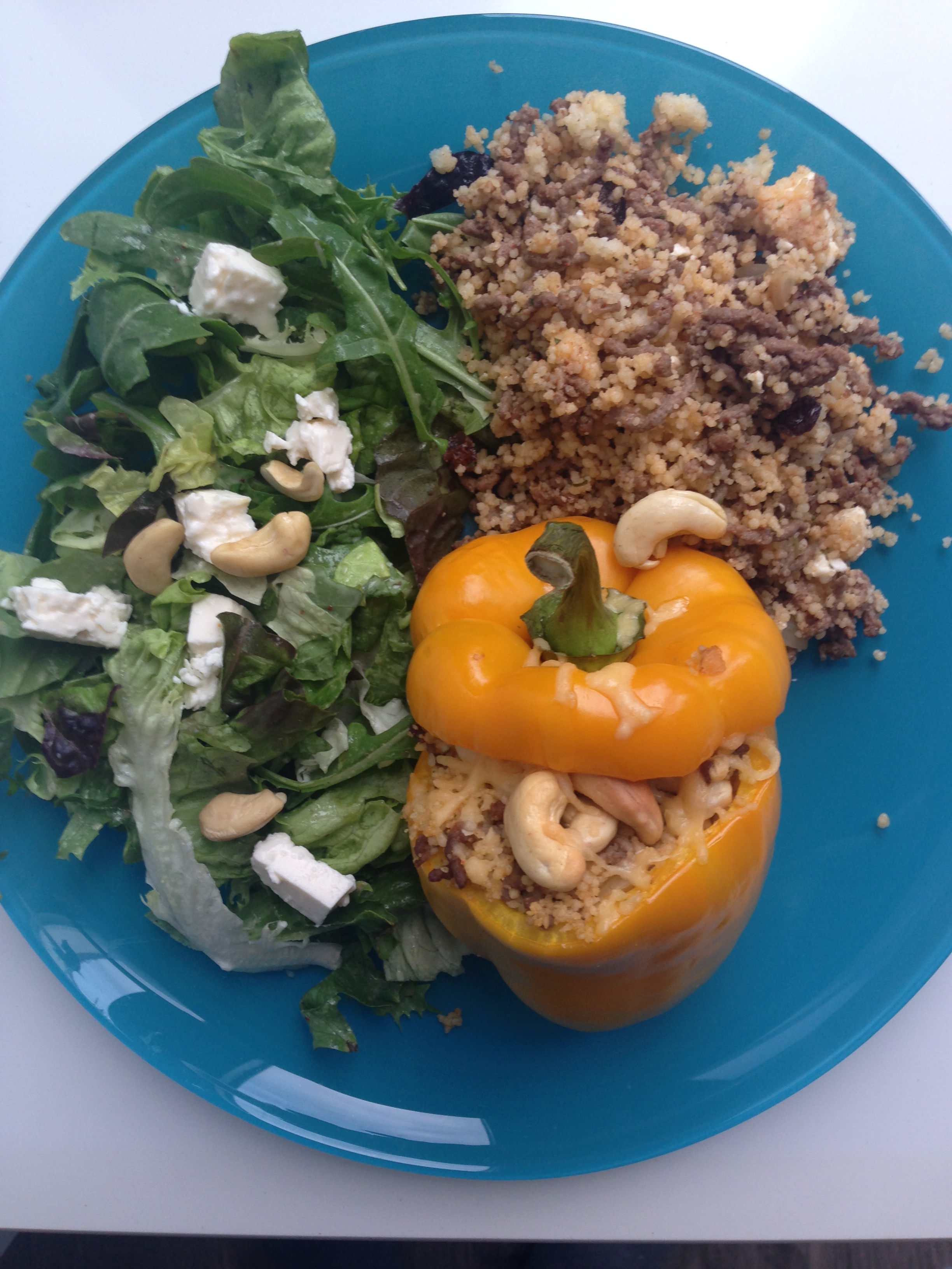 Gevulde groenten maakt een gerecht zoveel leuker! In een vorige blog schreef ik ook over gevulde groenten: gevulde courgette. Dit maal heb ik voor gevulde paprika gekozen. De combinatie met feta, rozijnen, gehakt en couscous is een heerlijke vulling.