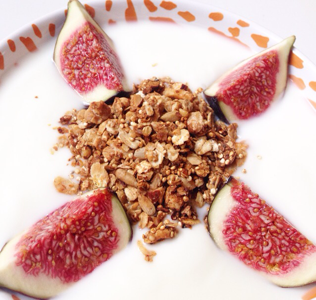 Griekse yoghurt is een van mijn favo als zuivel product. Het is zacht en minder zuur dan gewone yoghurt. Elk moment van de dag kan ik wel een kopje hier van eten, soms met niks er in of met vruchtjes of nootjes. Dit maal koos ik vijgen en speculaas granola met quinoa.