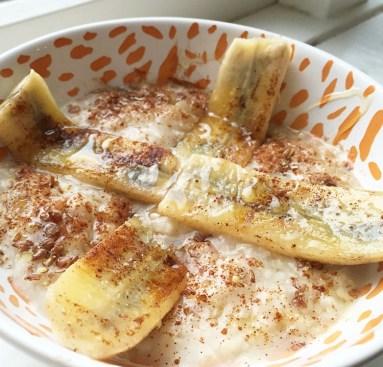 Banaan, mijn lievelingsfruit zoals je waarschijnlijk al door had. Dagelijks eet ik banaan, liefst bij elk gerecht maar goed dat wordt iets te gek. Havermout eet ik ook regelmatig, de combinatie banaan en havermout is zo lekker, dit keer heb ik er een andere variant van gemaakt. Benieuwd hoe je havermout met gebakken banaan maakt?
