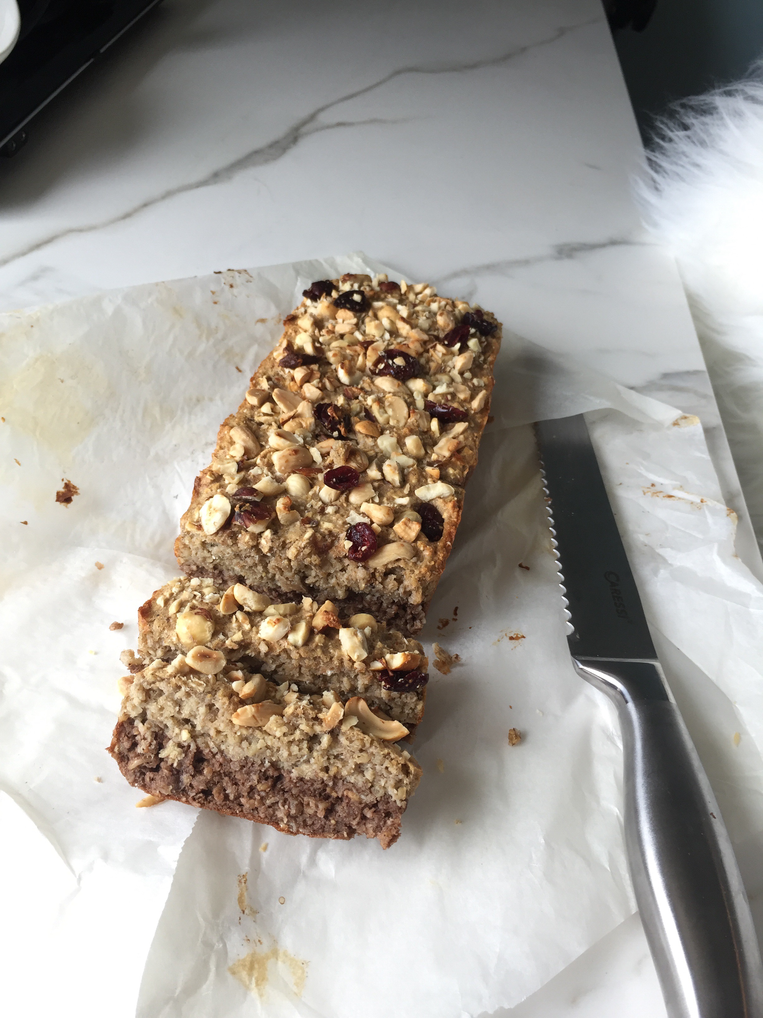 Wat heb ik het bakken van een bananenbrood gemist zeg! Vanaf januari aan het verbouwen en had de keukenmachine en het bakblik ingepakt. Met de gedachten dat ik die wel even kon missen. Ben toch maar alles gaan zoeken in de dozen want een keukenmachine is toch wel erg handig als je wat wilt gaan bakken. Dit keer heb ik een bananenbrood gemaakt met teff en een deel cacao.