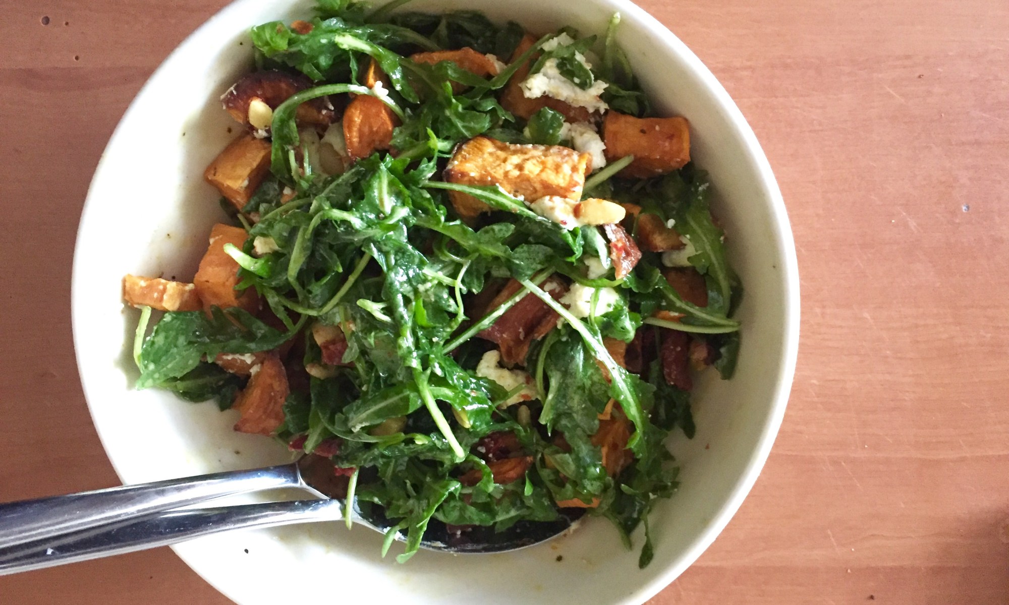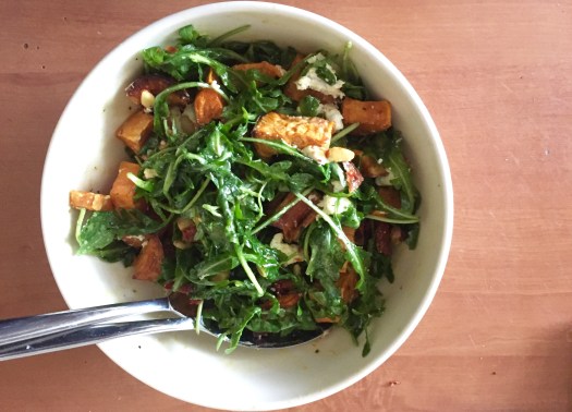 Als de zoete aardappel klaar is, laat je dit afkoelen tot het ieder geval lauw is. Voeg het toe en je kan de salade serveren.
