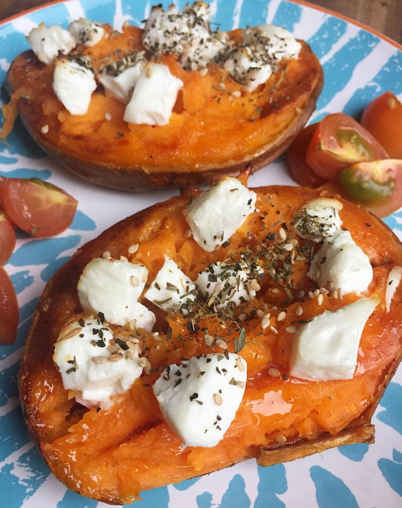 Warme oven gerechten zijn in tijdens de herfst en winter periode. Ook is het makkelijk, gerechten te maken in de oven. Dit gerecht kan je als lunch eten, maar ook als bijgerecht tijdens het avond eten. De zoete aardappel moet wel even gaar worden in de oven maar in de tussentijd heb je mooi de tijd om de rest van het eten te bereiden.
