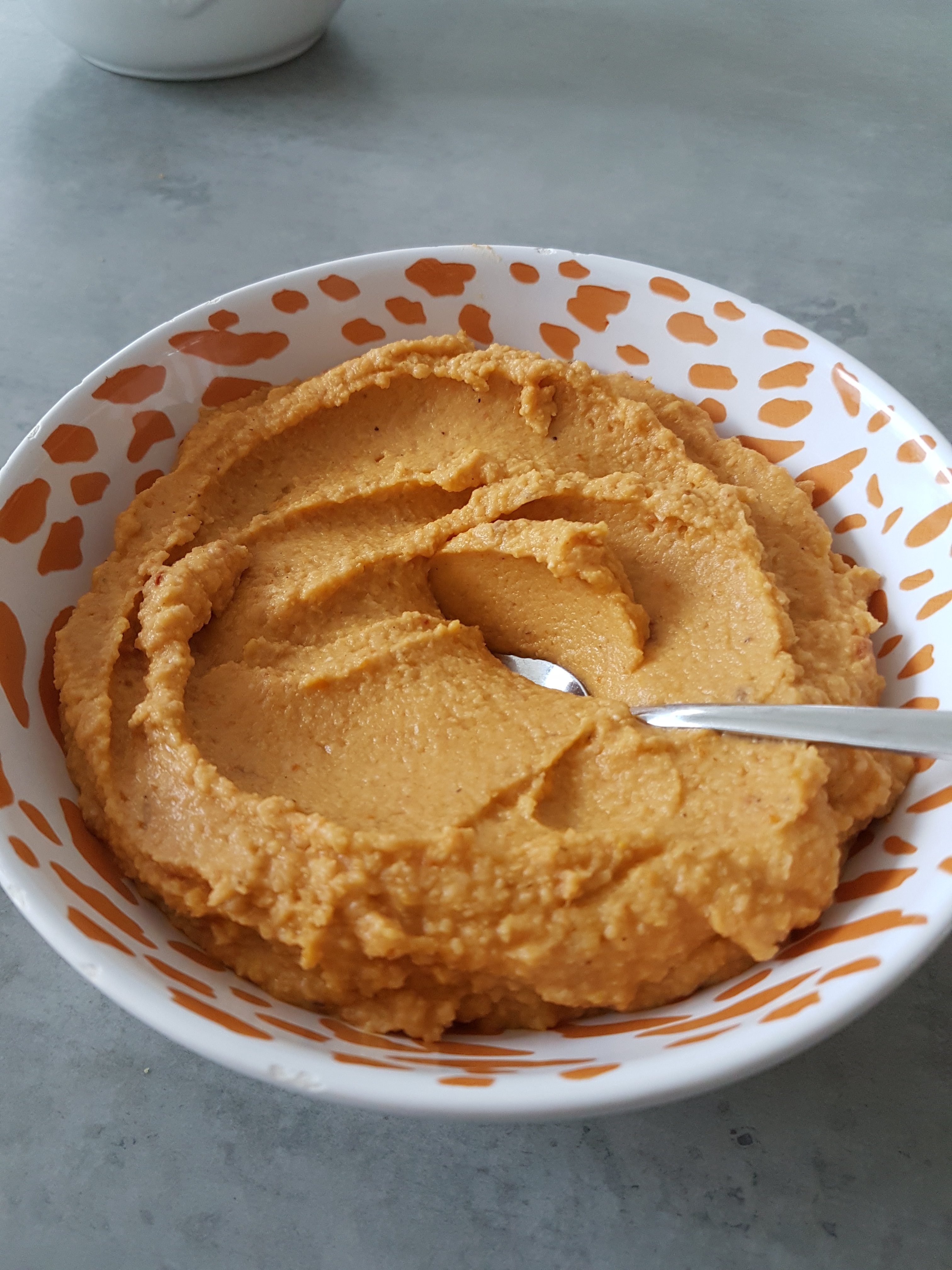 Hummus, een lekkere dip voor je groenten, voor op brood of cracker of op de wrap met wat avocado. Hummus is lekker, gezond en snel gemaakt. Met een paar ingrediënten heb je het op tafel. Dit keer heb ik pompoen toegevoegd aan de hummus. Pompoen is een herfst groenten en ik ben er dol op!