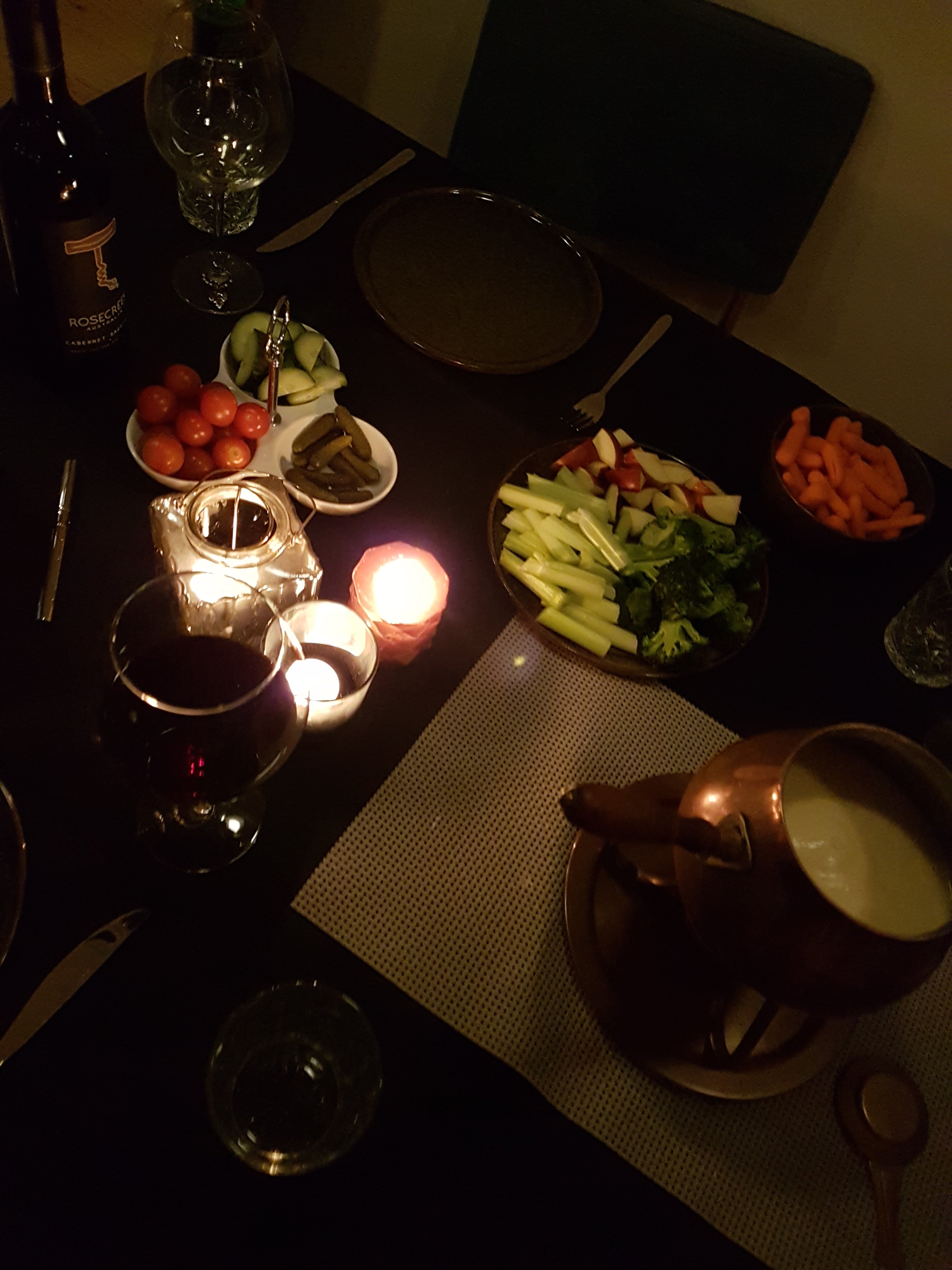 Naast de dips en de lekkere kaasfondue is aankleding ook belangrijk. Een tafelkleed of een loper is een must! Wij hebben een donker blauw tafelkleed voor de winter. Naast een tafelkleed kan je ook nog denken aan: