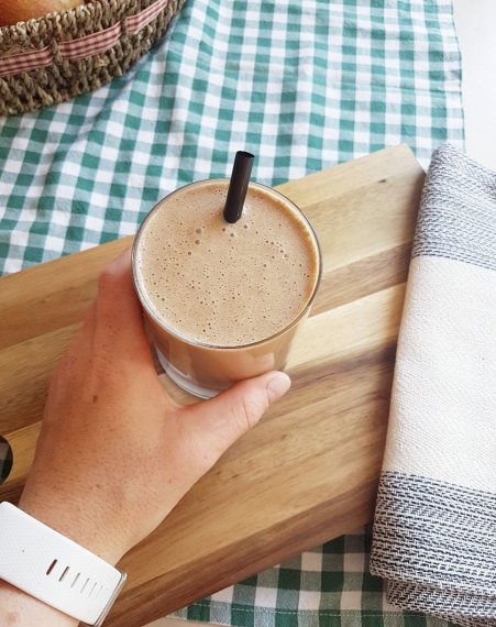 Het is een smoothie, maar hij lijkt bijna op een ijskoffie. Een smoothie met kaneel en espresso! Heerlijk om mee wakker te worden of als middag snack als opkikkertje.