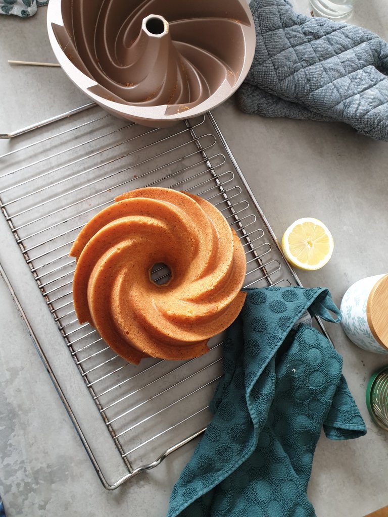 Zelf gebruik ik een tulband vorm van Patisse van 24 cm. Na het bakken is de cake zeker 4 dagen gekoeld houdbaar.