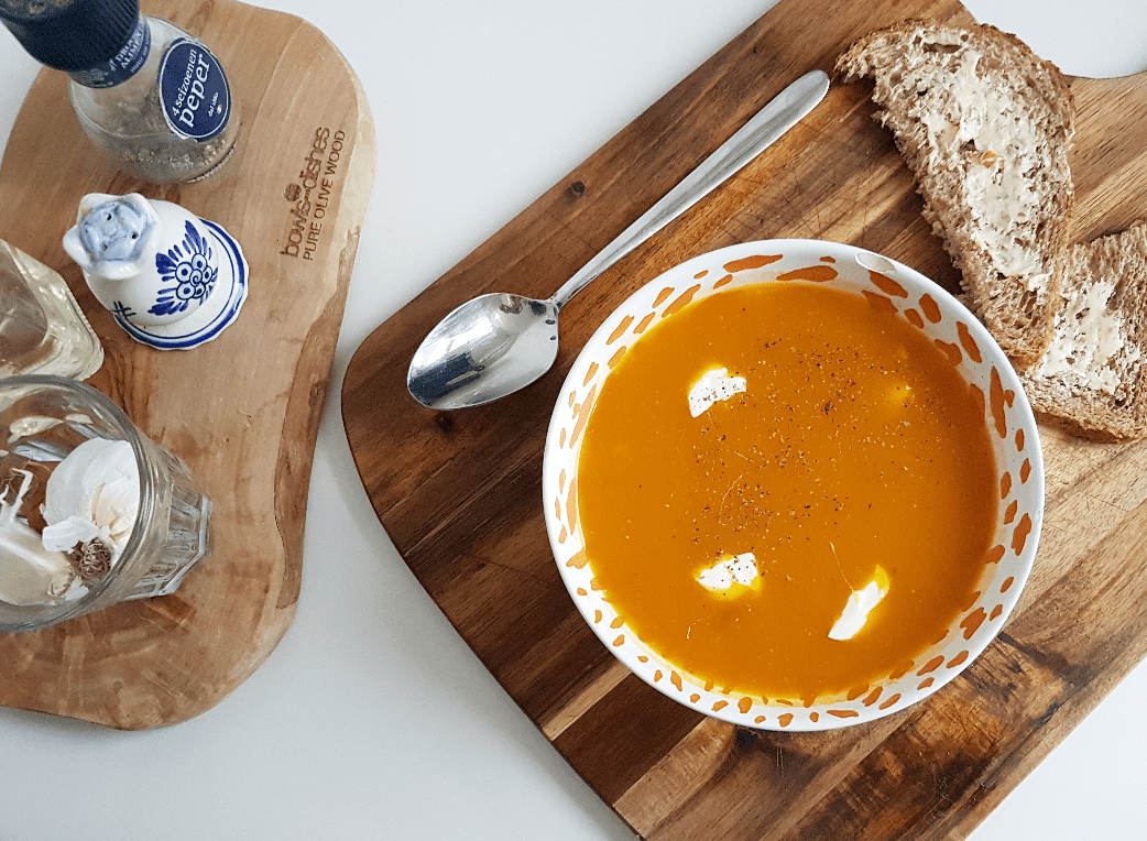 Op dit moment ligt er in Nederland een pak sneeuw! Hoe gaaf. Ja, ik ben er blij mee. Thuis opwarmen met soep is natuurlijk heerlijk. Daarom heb ik afgelopen weekend een grote pan soep gemaakt. Pompoen en wortel past heel goed in de herfst en winter. Pompoen is misschien wel wat lastig te snijden maar …