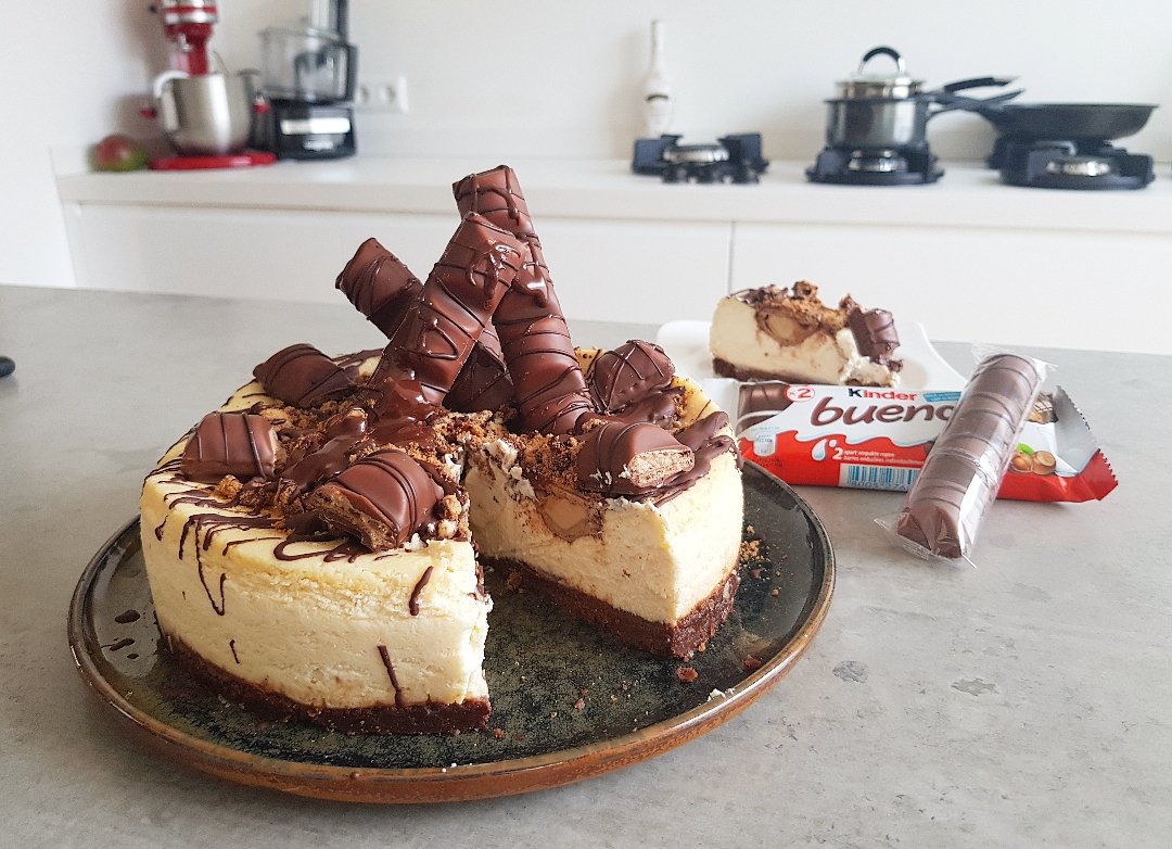 Cheesecake, mijn favoriete taartje! Ondanks de cheesecake best machtig kan zijn vind ik het het lekkerste taartje en maakt niet uit wat voor een! Daarom staan er ook redelijk wat cheesecake recepten op mijn blog.. en ik heb een verlanglijstje met soorten 'cheesecakes' die ik nog wil bakken en daar hoorde de Kinder Bueno cheesecake …